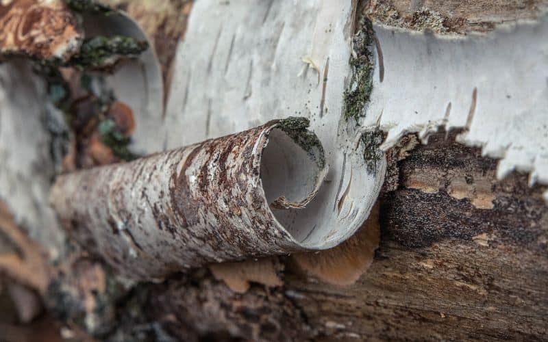 - Place your tinder (dryer lint, leaves, etc) on a piece of bark, or simply on the ground.